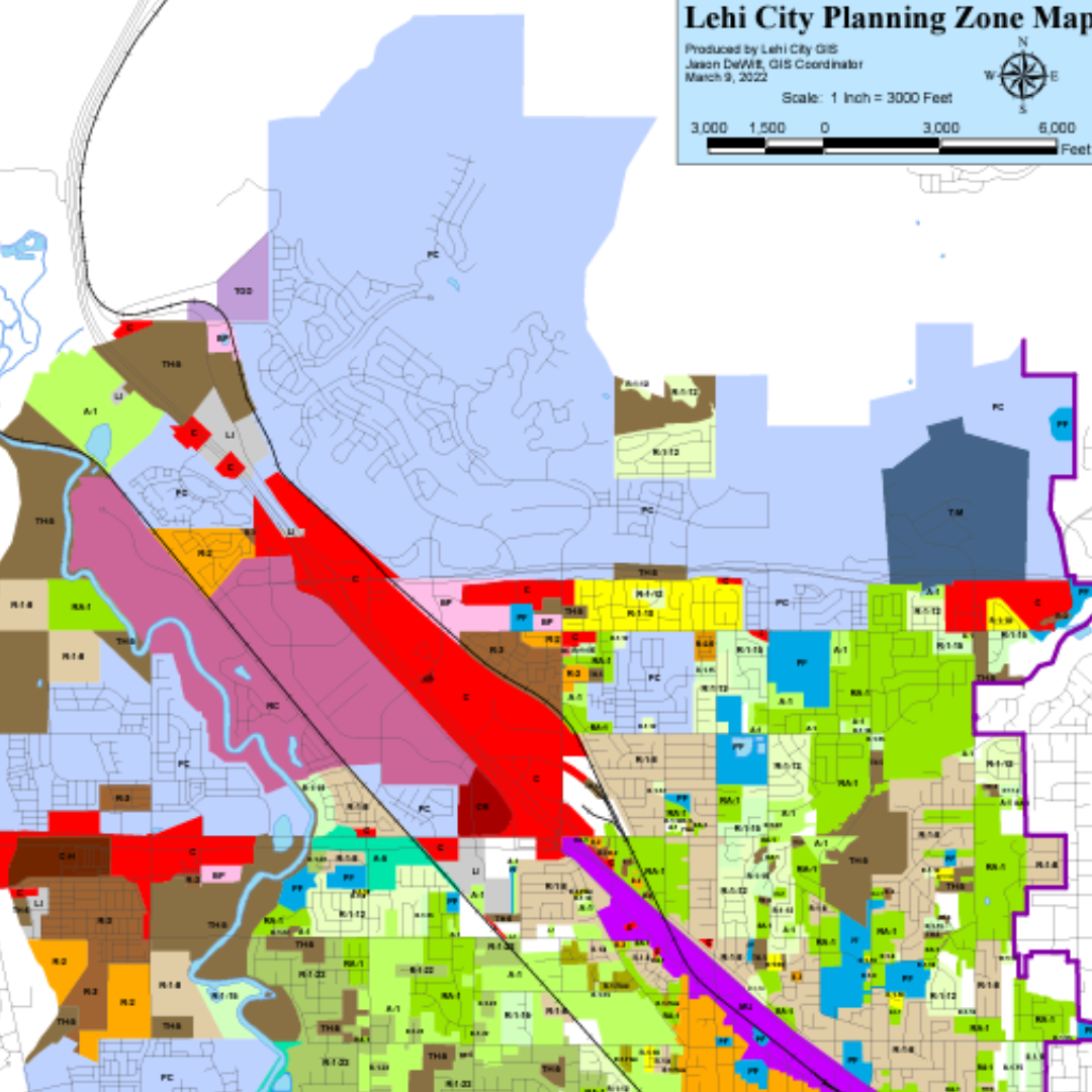 The Maps section provides a variety of geographic and zoning maps to assist with planning and development in Lehi City. To access maps and downloadable resources, please click here. For the Lehi City GIS Maps Dashboard, please click here.