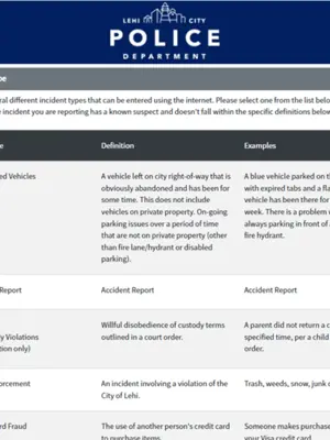 The Police Department will provide a safe and secure community by delivering professional and courteous services as determined in partnership with Lehi residents. The Police Department’s function is to serve and protect all people and property within the City limits. This is done through the coordinated efforts of patrol officers, detectives, code enforcement officers, and animal control officers.