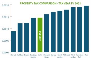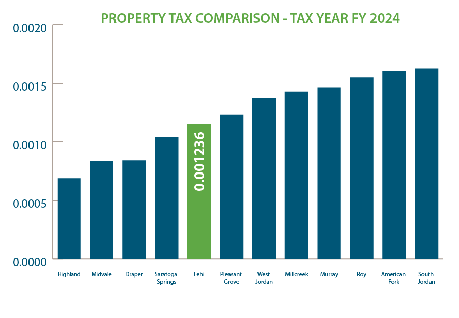 Maintaining an average rate for many years, property tax revenues have stayed relatively stable. When compared to other cities in Utah of a similar size, Lehi has maintained a relatively average property tax rate for many years which has helped to mitigate against the need for a significant rate increase in any single given year.