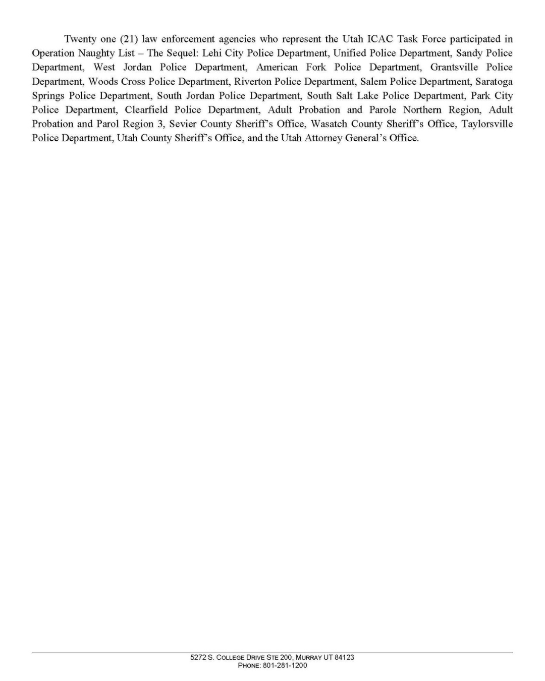 For a closer look at the operation, including detailed results and the full list of participating agencies, the Utah Attorney General’s office provides the following executive summary:
