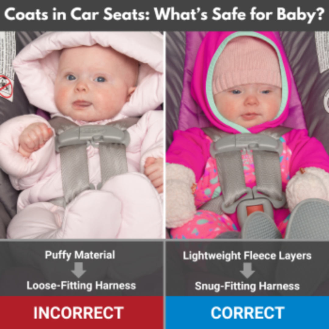 Bulky winter coats can make a car-seat harness too loose. The NHTSA warns that “too much bulk can create extra room in the harness” and put a child at risk. For safe winter travel, dress little ones in thin layers when buckling them in, then cover them with a blanket or put their coat on backward over the snug. This way, the harness straps fit correctly and everyone stays warm.