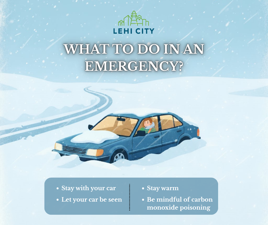 Even with precautions, vehicles can get stuck or break down in winter storms. If you become stranded in Lehi’s winter weather: