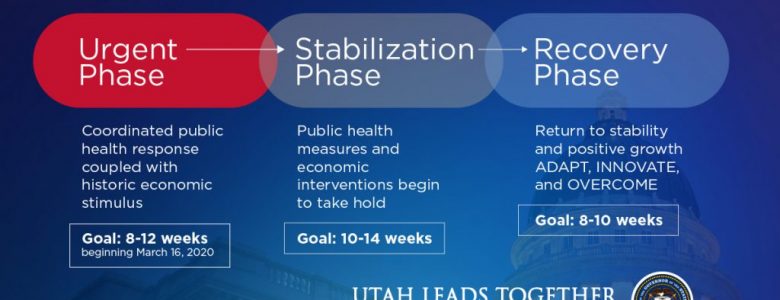 Utah Leads Together infographic, describing the three phases of the recovery plan from the State of Utah. ...