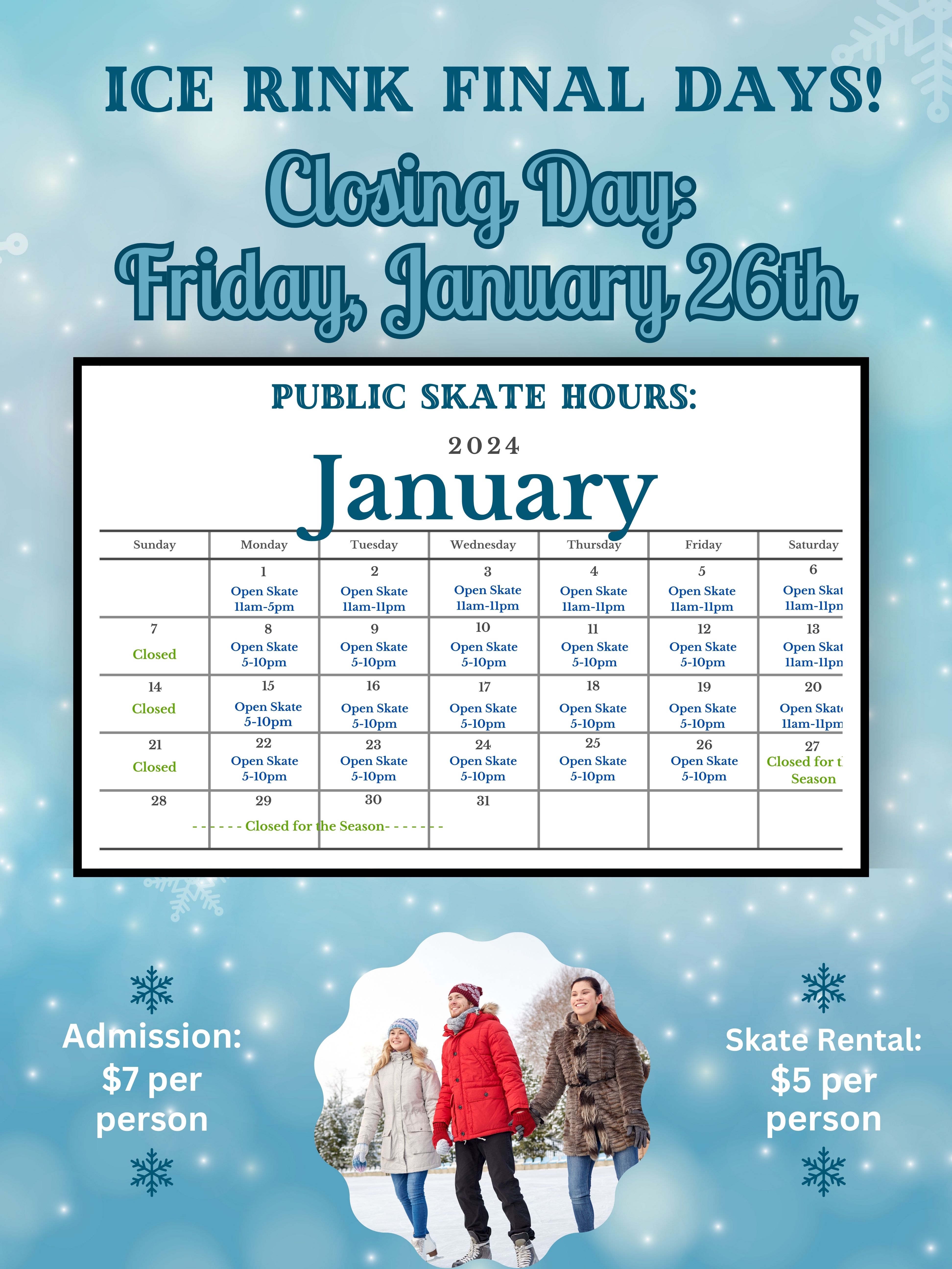 Schedule for 2024 Ice Rink...