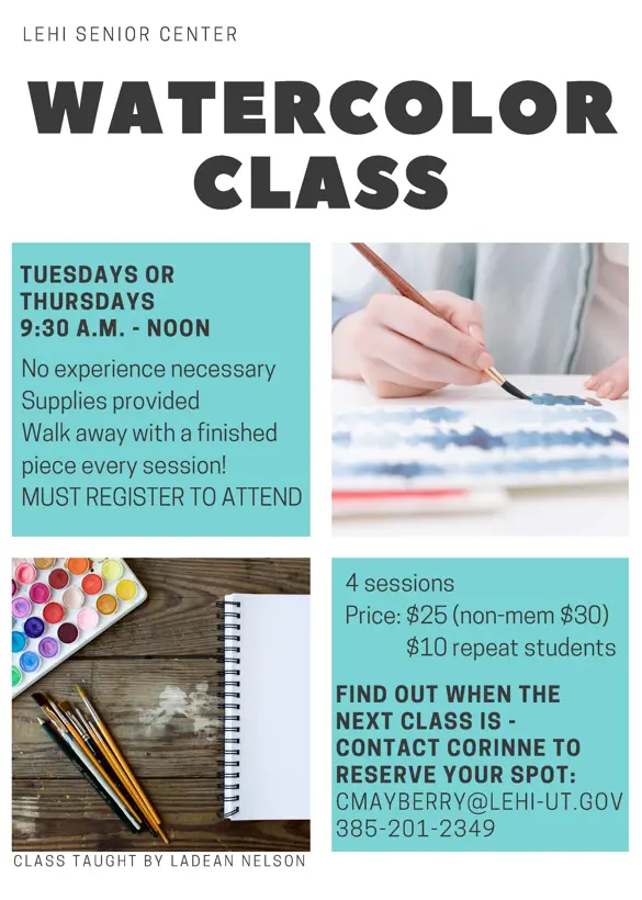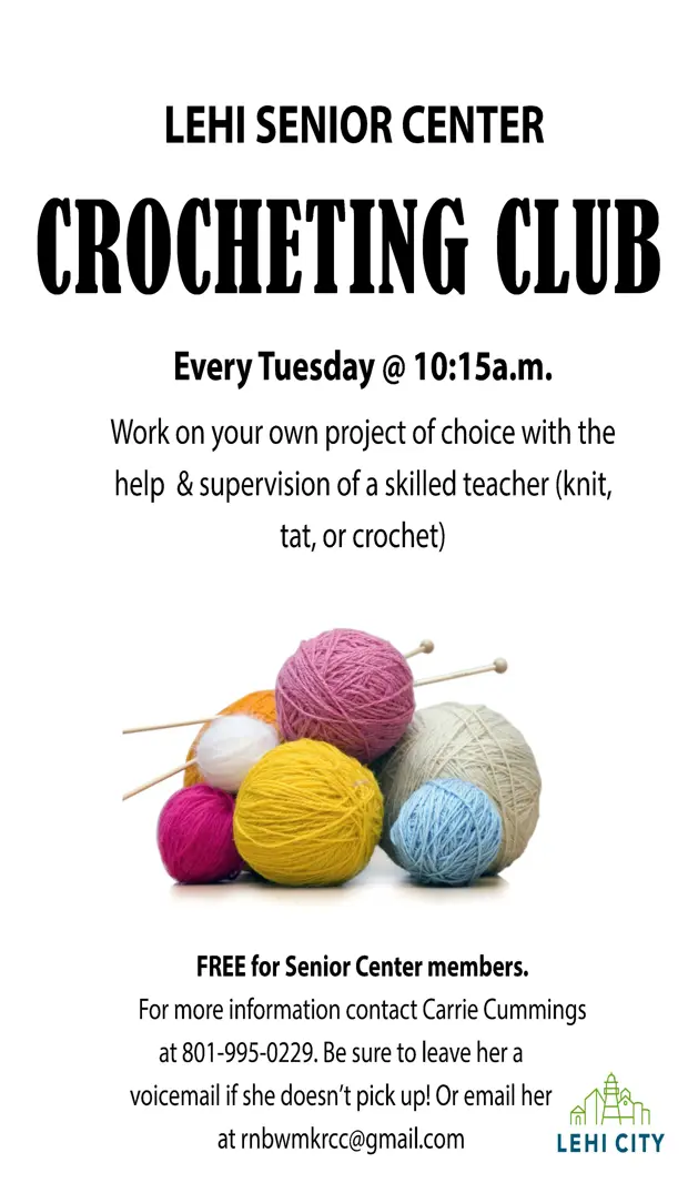 Read the newsletter below for more information on all the activities and trips happening in the Senior Center this month. If you would like to receive this newsletter each month via email, email Lacey at lbrems@lehi-ut.gov. You can also pick up a hard copy in the Senior Center.