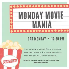 Join us for Monday Movie Mania! Held monthly on the 3rd Monday-unless otherwise noted. We show some of the old classics you know and love – and a few recent flicks too! Bring your own snacks if you’d like, but we will have a treat. See Flier Here