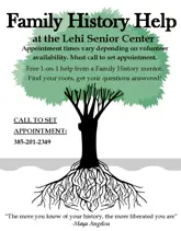 CURRENTLY ON HOLD. CHECK BACK LATER. Free one-on-one assistance from a Family History mentor. Find your roots and get your questions answered! Appointment times vary depending on volunteer availability – call for appointment. See Flier Here