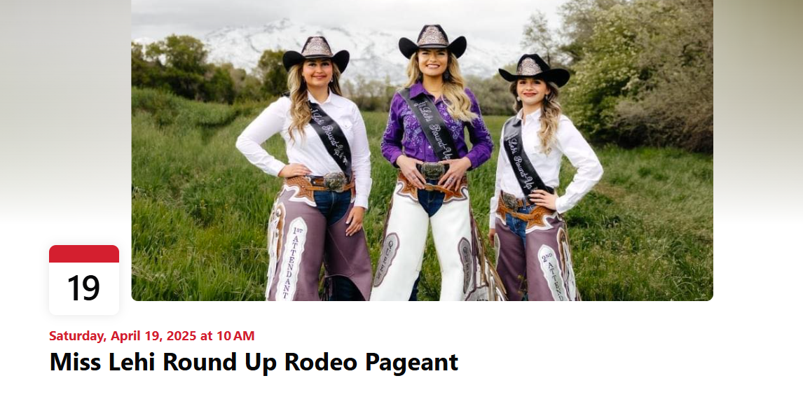 For more information see our Miss Lehi Round Up Rodeo Facebook and Instagram pages or email us at lehirounduproyalty@yahoo.com